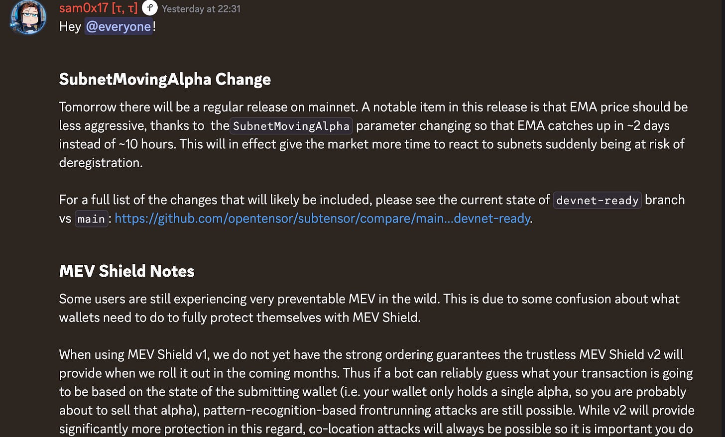 The network has just deployed a major update, centered around a parameter called SubnetMovingAlpha. To understand what’s changing, forget the Formula 1 car. Bittensor has just become an ocean liner.